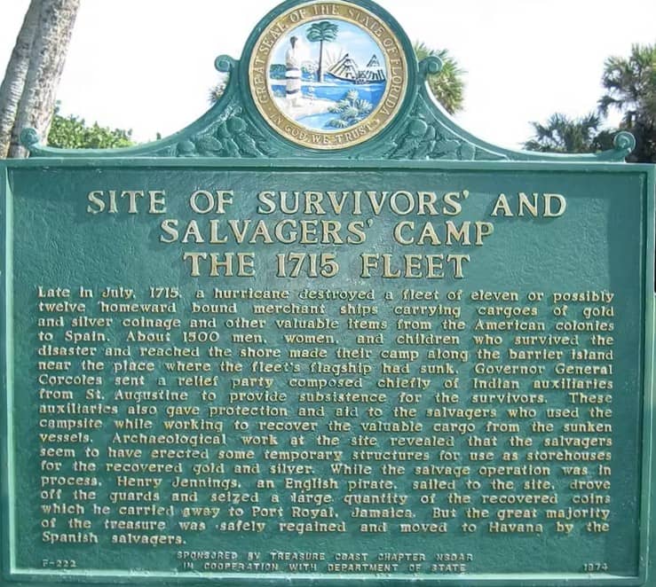Within weeks of the disaster, Spanish salvage camps sprouted along the coast with makeshift forts where soldiers guarded free divers who recovered tons of silver. Then pirates arrived. Henry Jennings, a Jamaican privateer-turned-pirate, raided the camps in 1716 and stole 120,000 pesos in recovered treasure.30