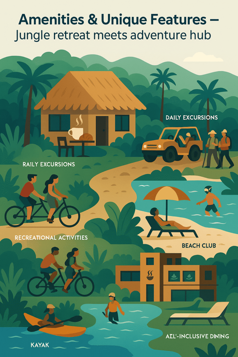 Amenities & Unique Features – Jungle retreat meets adventure hub